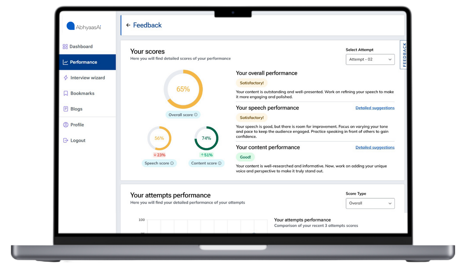 Get instant, actionable feedback after every mock. See what’s working and improve with every session.